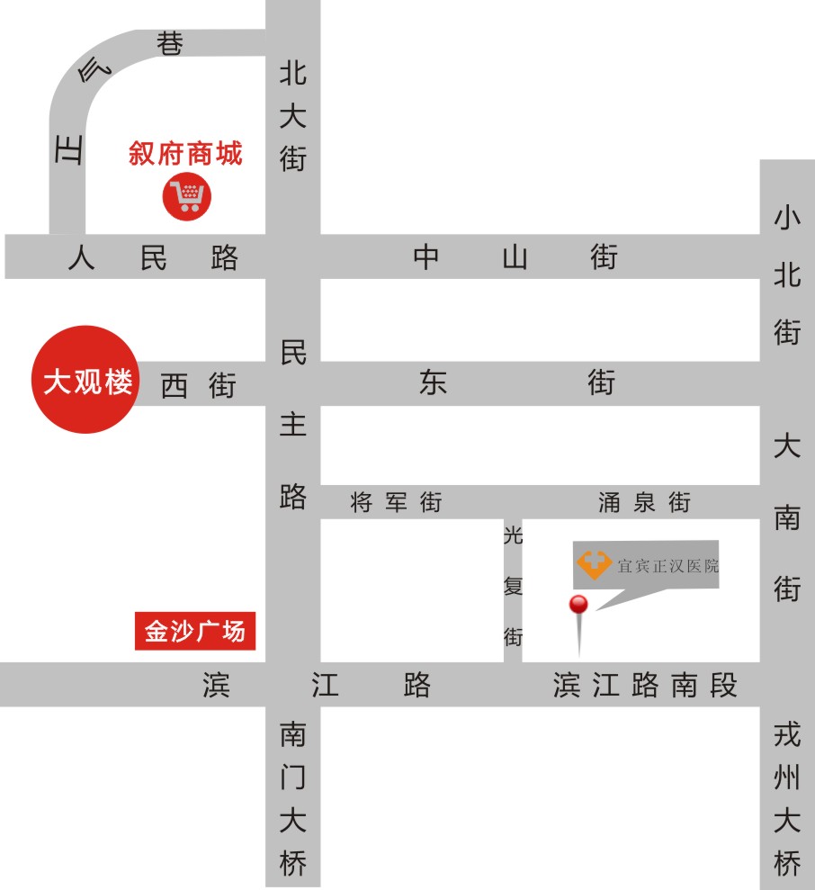 请直接开车至宜宾市滨江路南段24号(8路车公交站旁,南门桥和戎州桥中间怡安大厦),如中途路线不清楚,直接拨打电话:0831-3769555,工作人员会为您做详细解答。