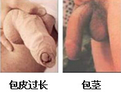 2、包皮口狭小,呈针孔样,可引起不同程度的排尿困难,尿流缓慢、细小,排尿时包皮膨起。