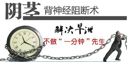 针对男性早泄采用阴茎背神经阻断术!阴茎背神经阻断术的治疗原理是建立在科学的生理解剖基础上,在保证阴茎背神经总体功能正常的前提下,通过降低龟头敏感度,提高射精阀值,利用技术手段实现阻断作用,从而达到治疗早泄的目的。